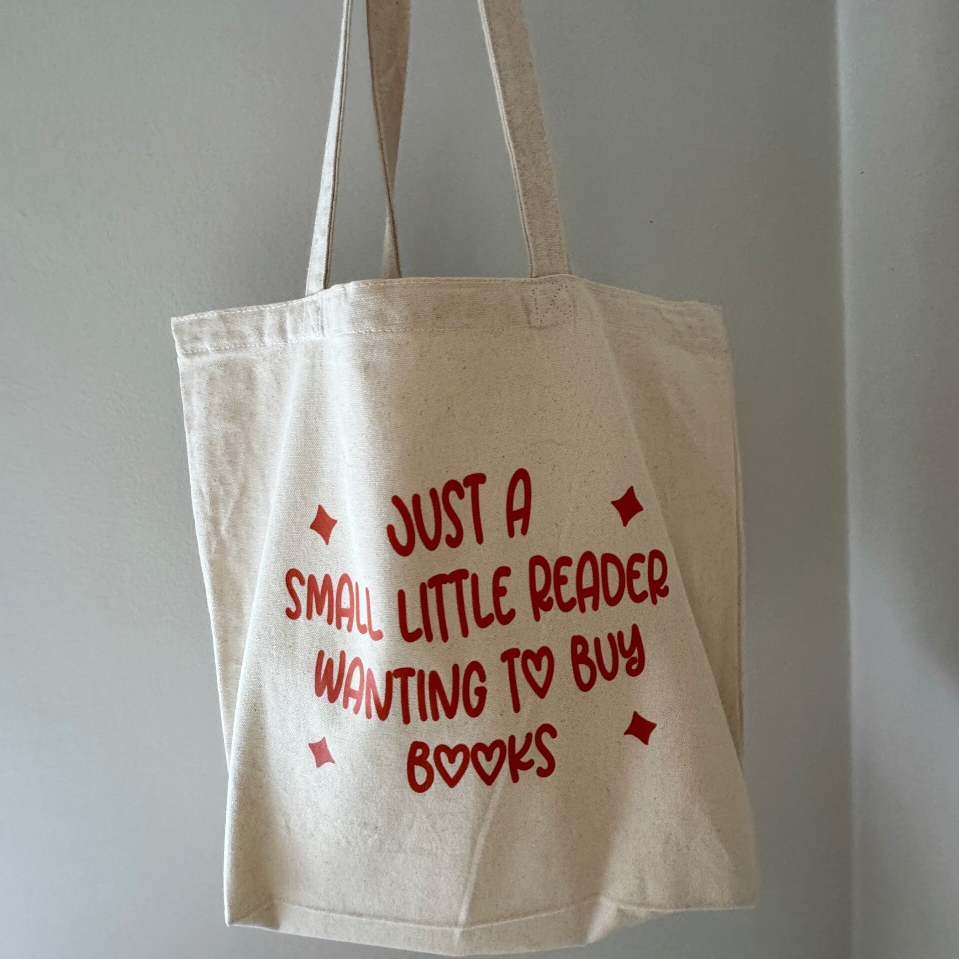 The tote bag is made of high-quality, 100% cotton material and has a size of 44cmx40 cm. The bag has a weight of 300gr/m2, so it is very thick and sturdy, making it perfect for storing heaps of books in all shapes and sizes.