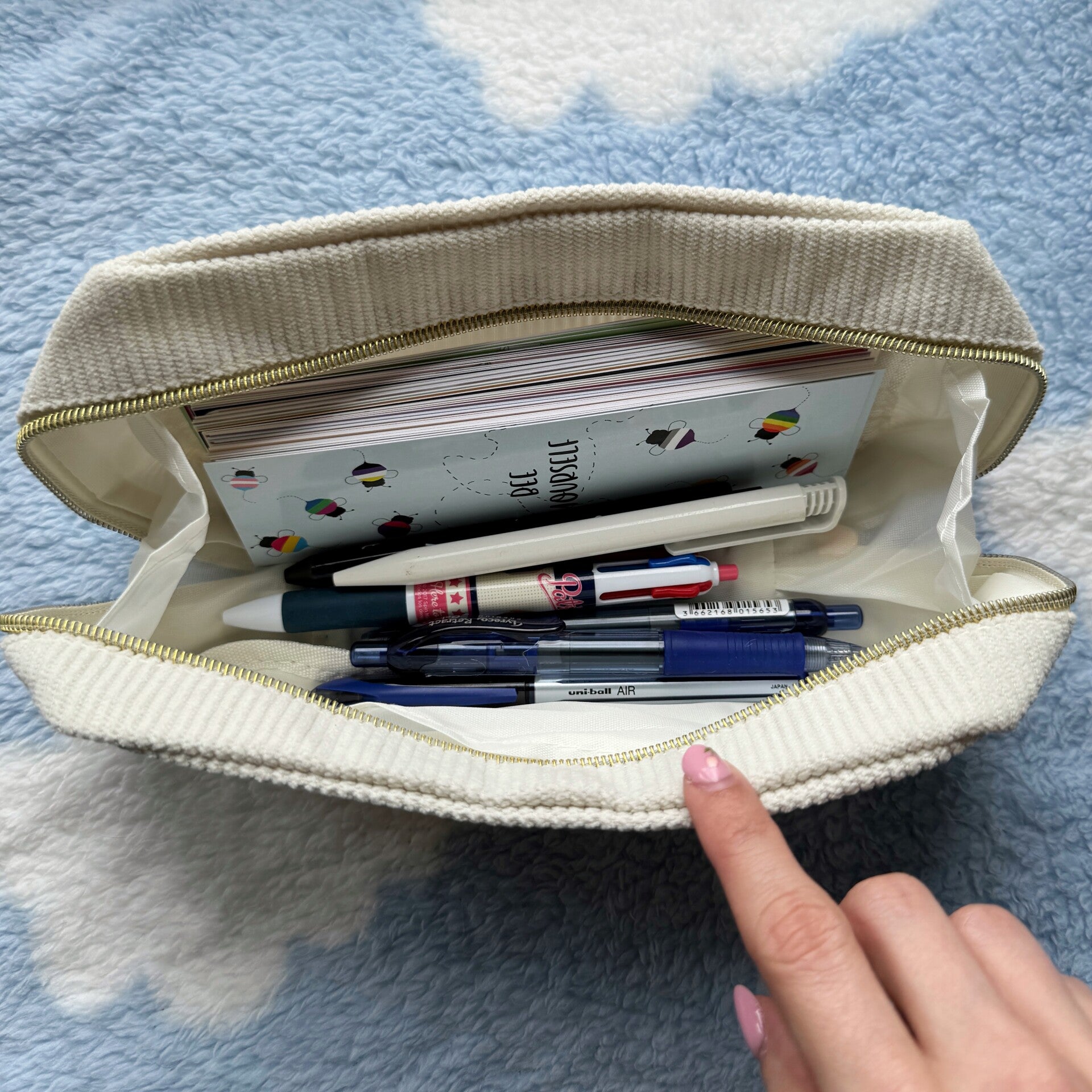 This little pouch is perfect to store your bookish items in. It is big enough to fit bookmarks, pens, sticky notes, and so on.